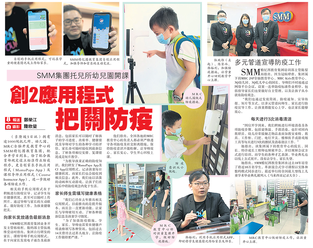 SMM 集团托儿所幼儿园开课,创 2 应用程式把关防疫